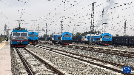 12月8日,重载群组列车在包神铁路集团万水泉南站南场试验开行。新华社发(宋高杰摄)
