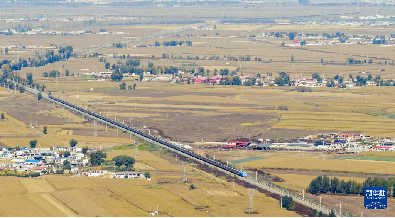 12月8日,重载群组列车在试验开行(无人机照片)。新华社发